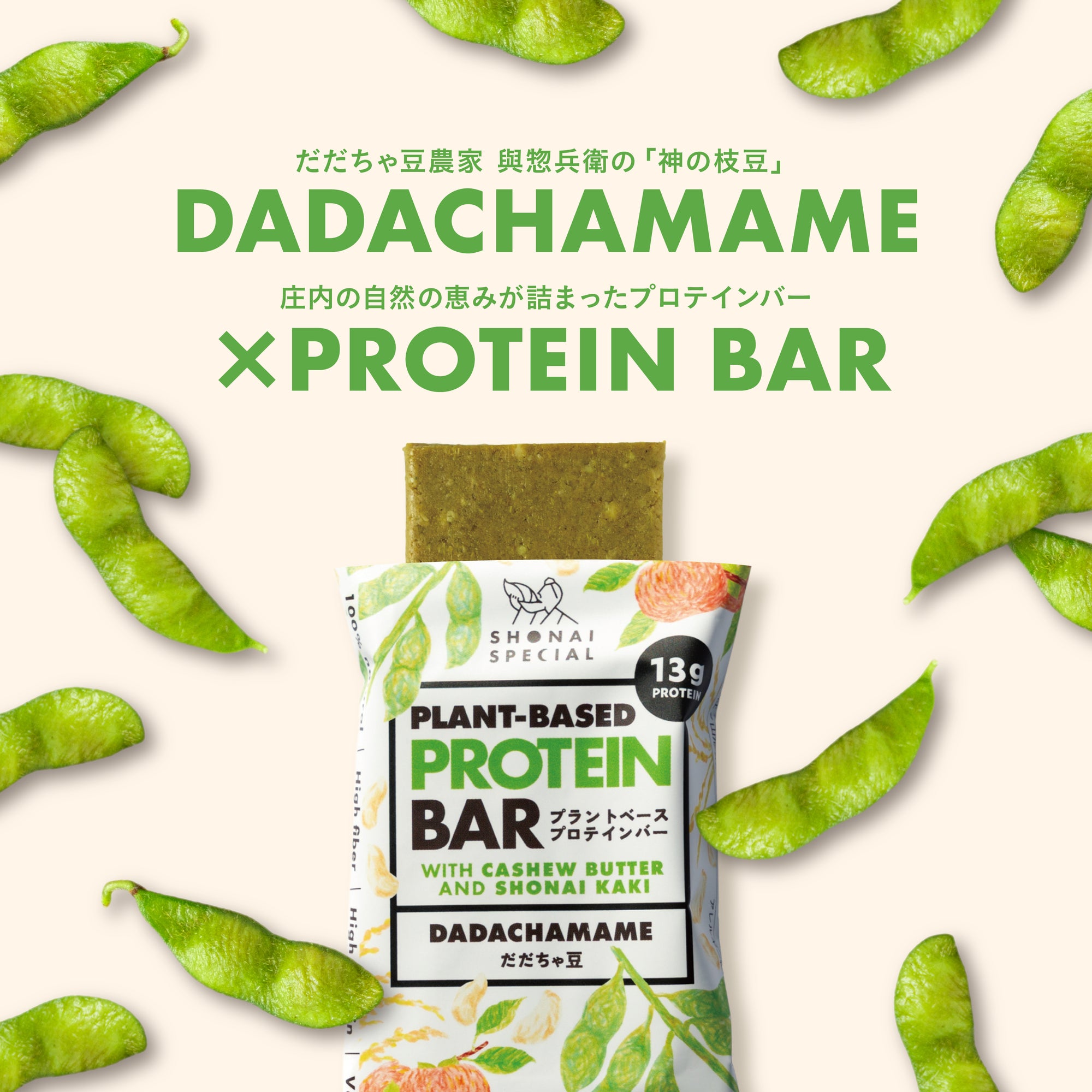 自然の恵みにプロテインをブレンド。最適なアミノ酸バランスを考え、そら豆、発芽玄米、有機パンプキンシードをタンパク源に使用。コク深い庄内柿と自家製ナッツバター、そして伝統的な製法で作られた玄米水飴がおいしさのひみつです。