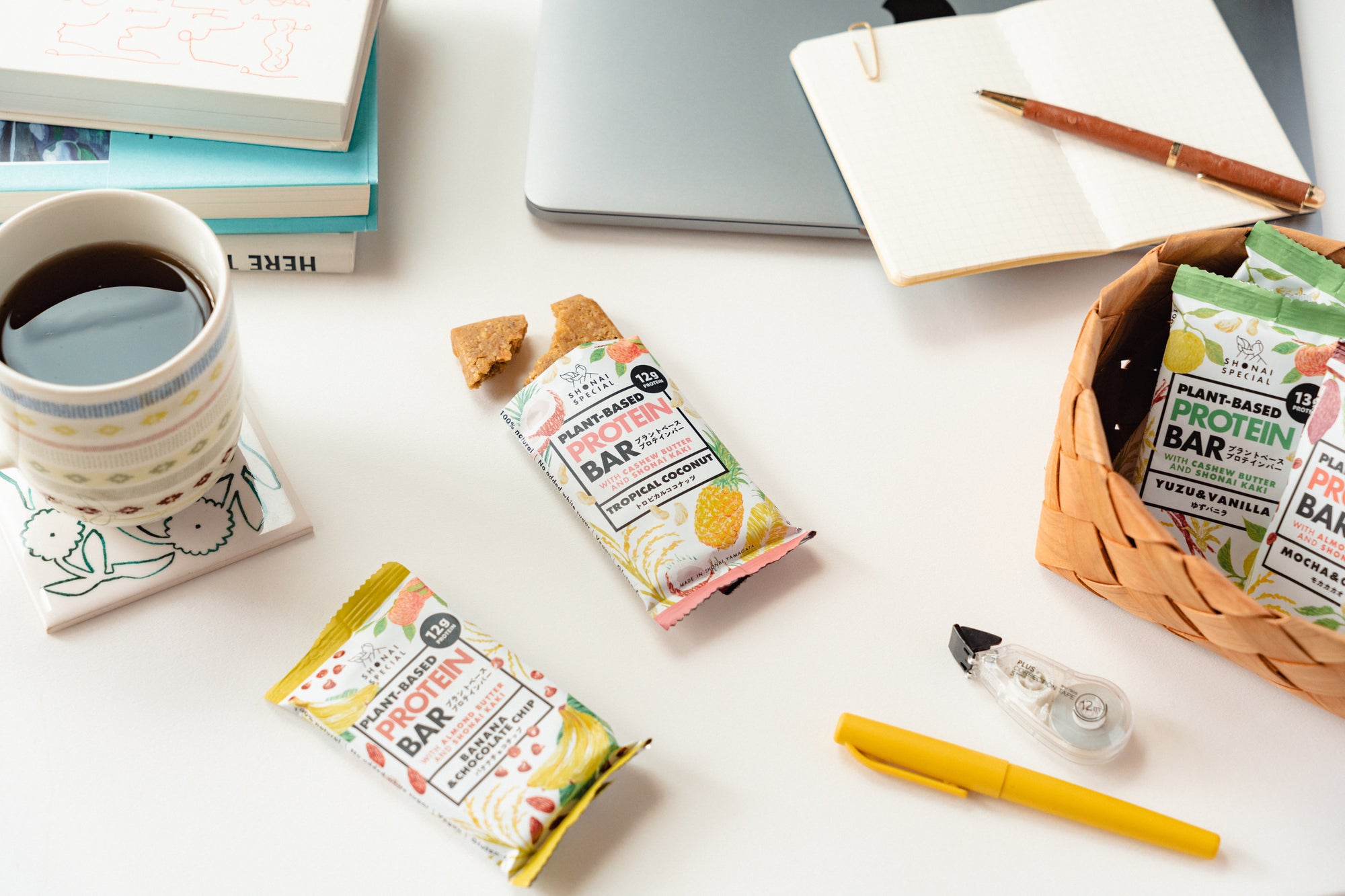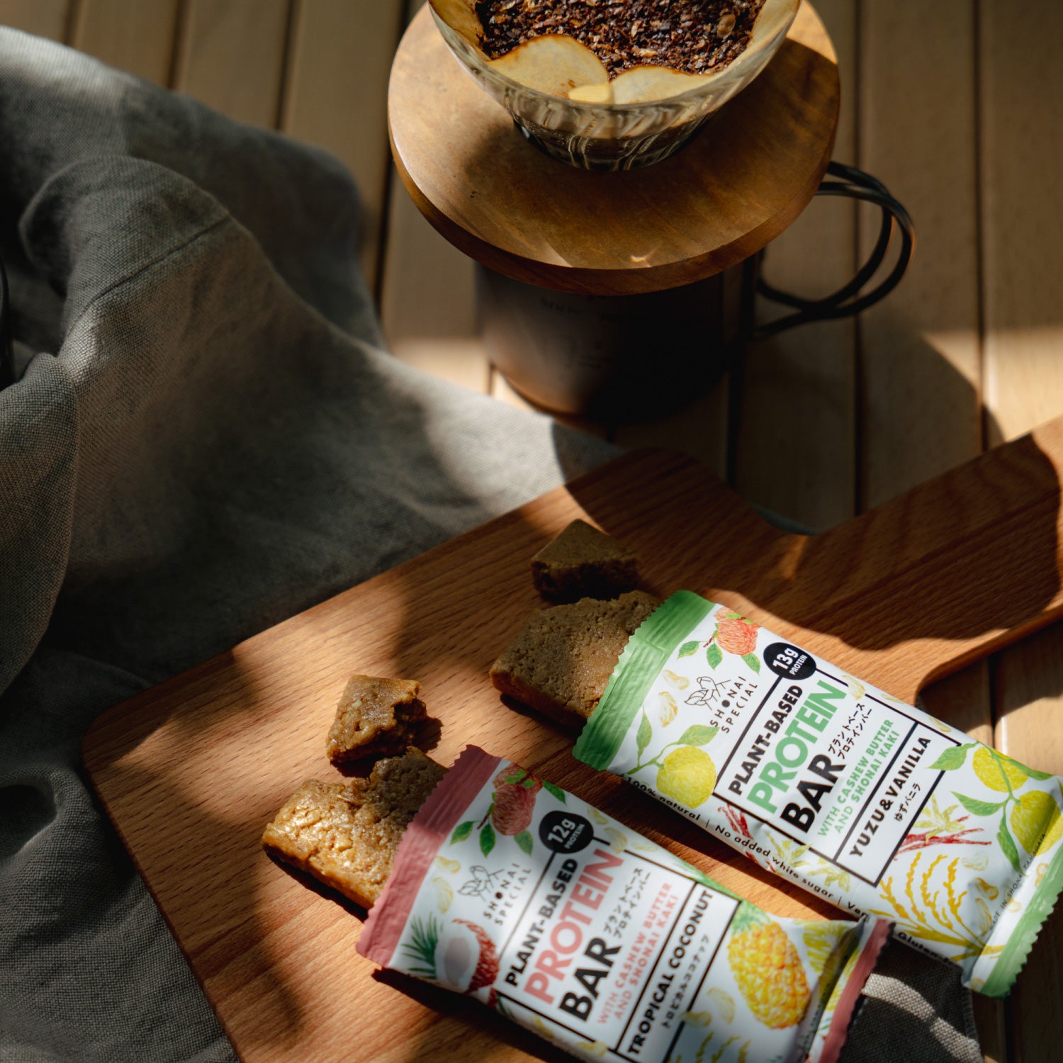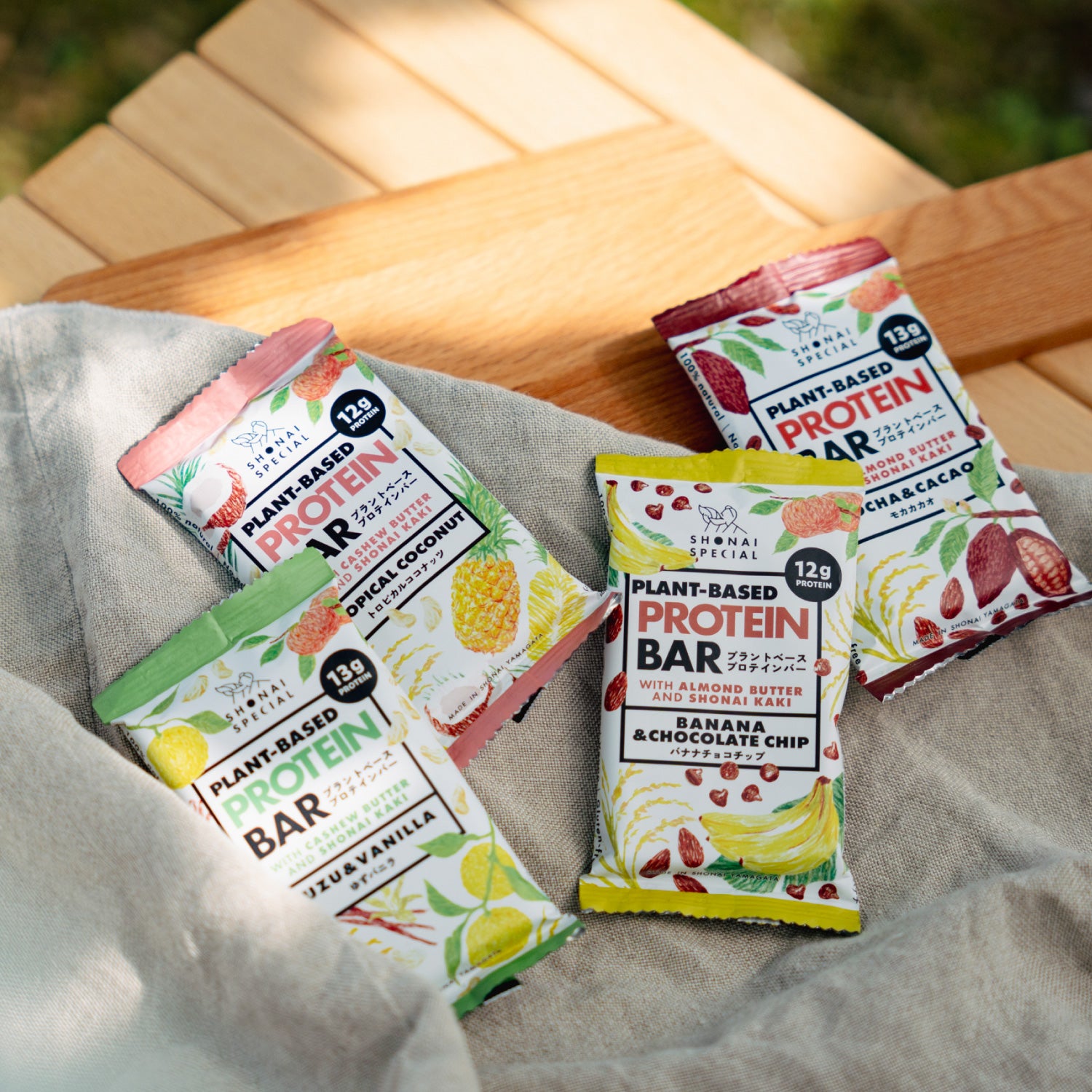 自然の恵みにプロテインをブレンド。最適なアミノ酸バランスを考え、そら豆、発芽玄米、有機パンプキンシードをタンパク源に使用。コク深い庄内柿と自家製ナッツバター、そして伝統的な製法で作られた玄米水飴がおいしさのひみつです。